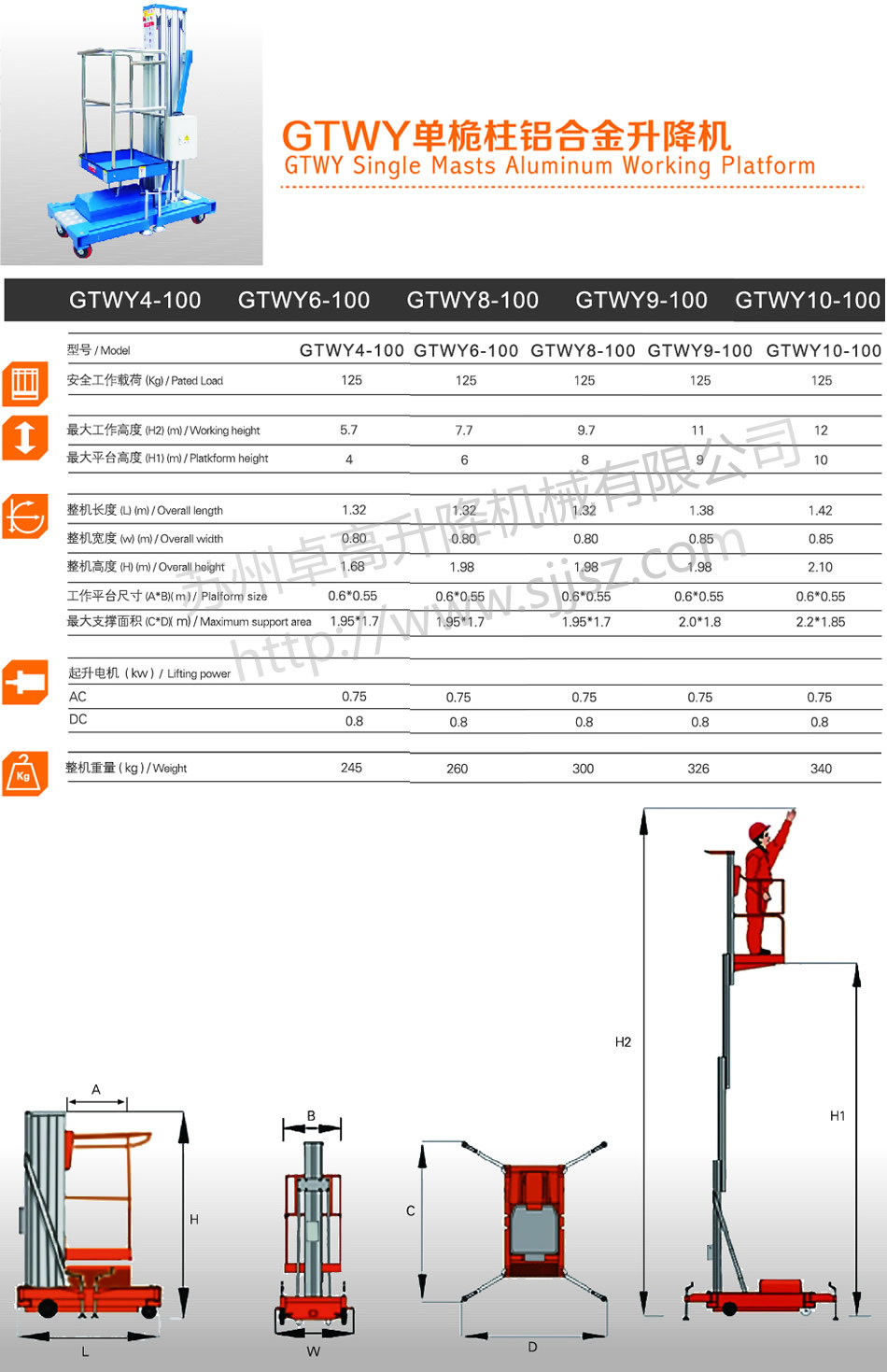 GTWY單柱式鋁合金升降平臺(tái)